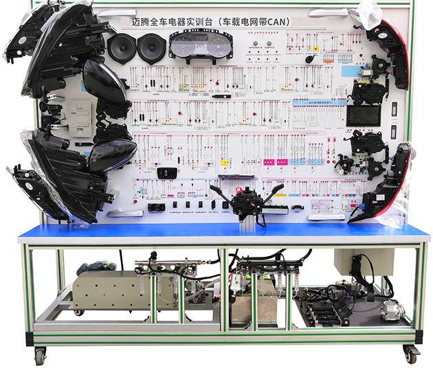 汽車電氣設備實訓室。汽車電器設備實訓室包含有汽車燈光系統、車載網絡系統、全車電器系統、汽車啟動系統、汽車空調系統、全車線路試驗臺、等實訓教學設備。該實訓室可以承擔《汽車構造》、《汽車電器設備》、《汽車電控系統》、《汽車檢測與診斷》等課程的實踐教學任務。可以用于研究、分析全車電器系統、燈光系統、儀表系統等電器設備的電路及功能。利用這些系統進行實踐教學,使學生熟悉汽車電器的結構和工作原理,掌握各個系統的基本組成電路,掌握主要電路的檢測方法和系統的故障特征,從而具有一定的檢測和調校能力。