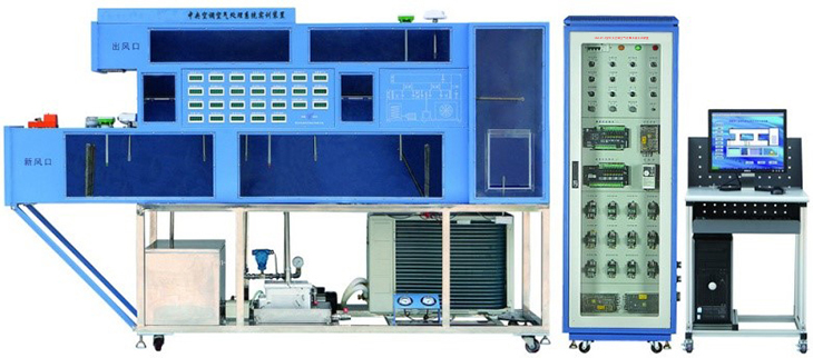 1.該系統(tǒng)由實(shí)驗(yàn)臺(tái)、空調(diào)冷熱源系統(tǒng)、空氣循環(huán)模擬系統(tǒng)、空調(diào)控制與測(cè)試系統(tǒng)和電氣控制柜等組成。使用不銹鋼和有機(jī)玻璃材料防止設(shè)備生銹和老化。設(shè)備配有真實(shí)的恒溫供暖、恒溫冷氣系統(tǒng),直觀生動(dòng)地把工業(yè)實(shí)際應(yīng)用展現(xiàn)出來(lái),簡(jiǎn)潔明了。采用帶標(biāo)準(zhǔn)LonWorks通訊接口的控制器,保證了中央空調(diào)系統(tǒng)與樓宇系列其他子系統(tǒng)及管理層的無(wú)逢集成。