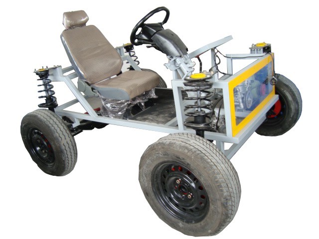 2、由三相電機做動力源帶動助力泵工作,操縱方向盤,調節車速信號模擬按紐,真實演示低速時前后輪逆相轉向、高速時前后輪同相轉向的四輪轉向工作過程。