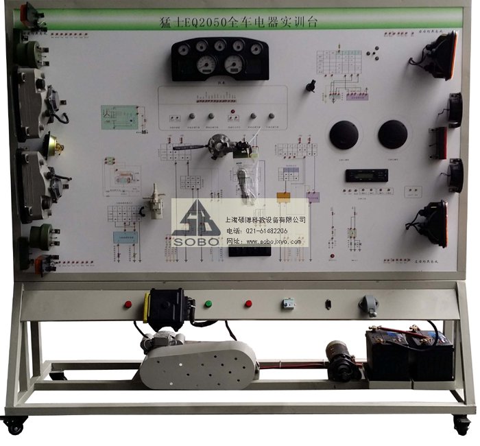 該設備采用全新EQ2050整車電器實物為基礎,充分展示 柴油機汽車儀表系統、燈光系統、雨刮系統、喇叭系統、發動機電器系統、起動系統和充電系統等汽車電器各系統的組成結構和工作過程。