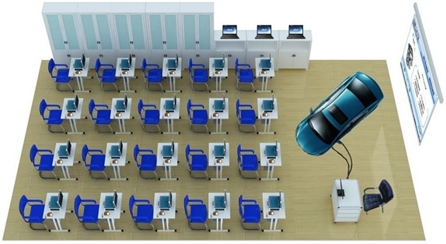 整車實訓室主要設備有豐田卡羅拉實訓整車、實訓整車、東風日產啟辰實訓整車、長安實訓整車、卡羅拉解剖車、四柱舉升機、四合一汽車檢測線、電腦診斷儀、四輪定位儀、拆胎機、輪胎平衡機、電噴系統清洗機、廢油收集器等。開展實訓項目有:整車結構認識、整車故障設定與排除、整車各系統數據分析、各電控系統的故障診斷與檢測、車輛四輪定位、輪胎拆裝、輪胎動平衡、汽車維修保養等。