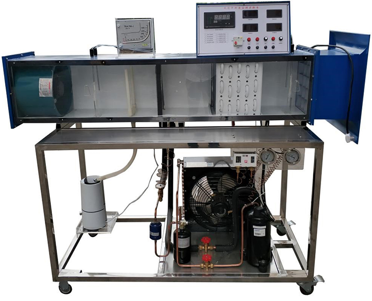 主要配置:由制冷壓縮機;風冷冷凝器;風機盤管蒸發器;實驗風洞;加濕器;電加熱器;保障蒸發器被壓的引風機;進、出風洞的空氣參數測試系統;控制調節系統等組成。