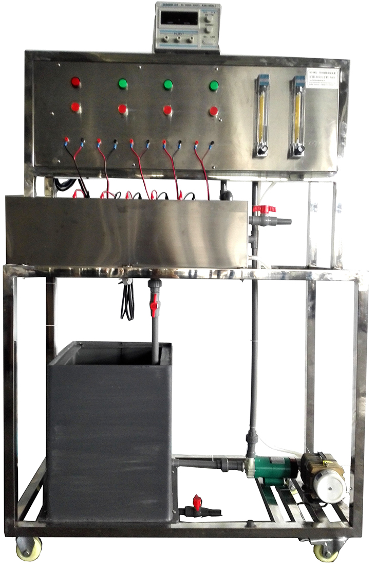 2. 電解、沉淀、過濾一體化電解槽:尺寸560×160×200mm,不銹鋼結構,內襯PP板。
