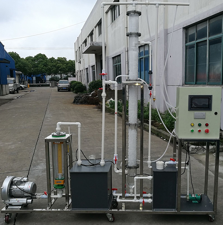 5.透明德國德固賽進口亞克力三段填料塔1套、填料1批(Φ25mm空心多面球)、除霧器1套;