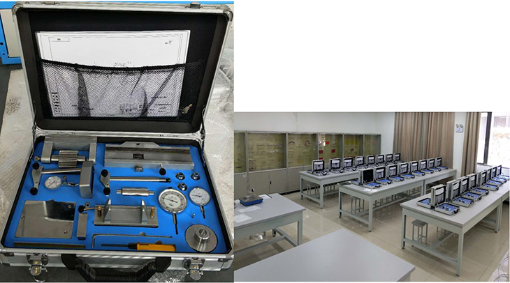 零件形位誤差測量組合實訓裝置是根據《公差配合與技術測量》課程的基本教學要求,精心設計的一套零件形位誤差檢測組合訓練產品。它由檢測零件、組合跳動儀、組合測微儀、配套圖紙及實訓指導書組成。其目的是通過零件形位誤差的檢測,加深學生對形位誤差及形位公差基本概念的了解,掌握形位誤差測量的方法的技能,為公差配合在后續課程中的應用奠定扎實的基礎。