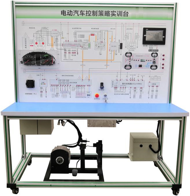 純電動汽車電控系統教學平臺采用純電動車控制策略系統(包含電機控制、電池管理、VCU控制、車載充電機、電源轉換系統、高壓安全系統)的真實器件制作,包含電池及管理系統、電機及控制系統、車載充電系統、整車控制器VCU及控制系統、電源轉換系統(AC-DC模塊、DC-DC模塊、DC-AC模塊)、高壓安全系統,真實展示電動汽車控制策略系統的結構原理與工作過程,純電動車控制策略系統動力性能、可靠性能、安全性能。實現控制策略演示驗證操作,包括起步模式、正常驅動模式、能量管理策略、安全控制策略以及其他情況下的控制策略等,并對控制策略進行檢測分析診斷。