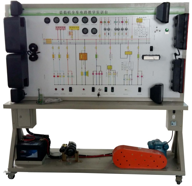 裝載機整車電氣實訓設備采用 全新ZC50裝載機 整車電器實物為基礎,充分展示儀表系統、燈光系統、雨刮系統、喇叭系統、發動機電器系統、起動系統和充電系統等電器各系統的組成結構和工作過程。