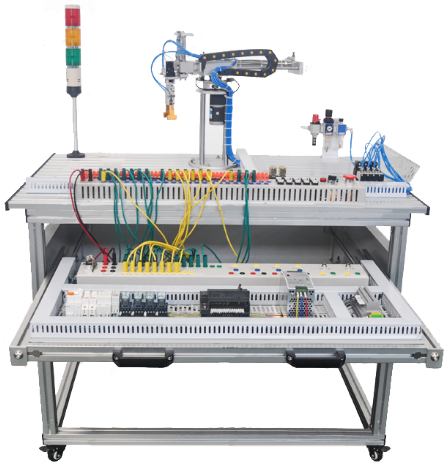 電工電子與PLC實訓臺通過上述實訓設備,學生可在實訓室中完成PLC的基本指令編程練習、三相異步電動機控制練習、PLC觸摸屏控制設計練習以及如流水燈控制、起重機控制、十字路交通燈控制、三層電梯控制等實際設計項目的練習。同時,通過外掛電子實訓設備,學生可以通過實訓驗證基爾霍夫定律、疊加原理、戴維南諾頓定理、雙口網絡、互易定理等電子相關定理。電工電子電拖PLC綜合實訓考核裝置主要承擔《電工技術實訓》、《PLC及其應用》、《模擬電子技術實訓》、《數字電路實訓》、《電力拖動實驗實訓》、《電力拖動實驗實訓》、《PLC可編程控制器基礎電路實訓