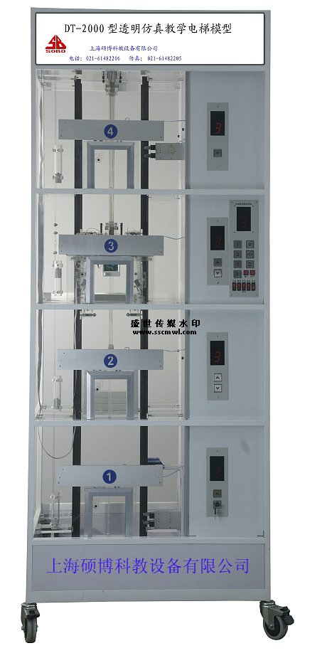 上海碩博公司的DT系列透明電梯是根據(jù)最常見的升降式電梯結(jié)構(gòu),采用鋼管焊接一體而成,表面經(jīng)過磷化噴塑處理、具有良好的結(jié)構(gòu)剛性。為了便于教學(xué),電梯主要機構(gòu)部件均采用透明有機材料制成 (包括:限速器、轎廂、層門及門廳立面、轎門、轎廂、機房底板、導(dǎo)軌支架……)為了使電梯運行控制更加精密可靠逼真,設(shè)計了與實際電梯比例縮小的鋁合金轎廂對重導(dǎo)軌、及轎門門機導(dǎo)軌、層門導(dǎo)軌。